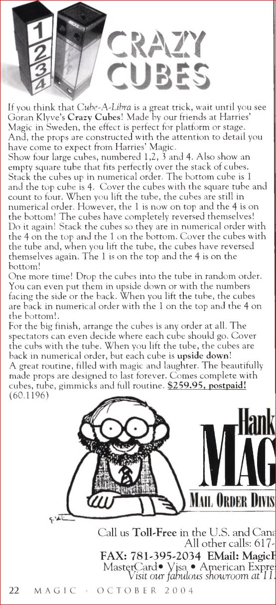 If you think that Cube-A-Libre is a great trick, wait until you see Goran Klyve’s Crazy Cubes! Made by our friends at Harries Magic in Sweden, the effect is perfect for platform or stage. And, the props are constructed with the attention to detail you have come to expect from Harries Magic.