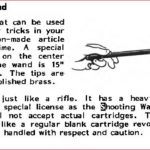 The shooting device is just like a rifle. It has a heavy steel barrel. It is foolproof. It requires no special license as the Shooting Wand will shoot only .22 blank cartridges. It will not accept actual cartridges. This wand will “shoot apart” a paper bag just like a regular blank cartridge revolver.