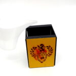 Many, many more effects are possible with this ingenious box. It should be noted that no covers of any type are used to keep the liquids from spilling. There are no moving, tipping or hinged gimmicks. This is NEW. The box measures 7″ x 5″ x 5.5″ and is well made and attractively decorated.