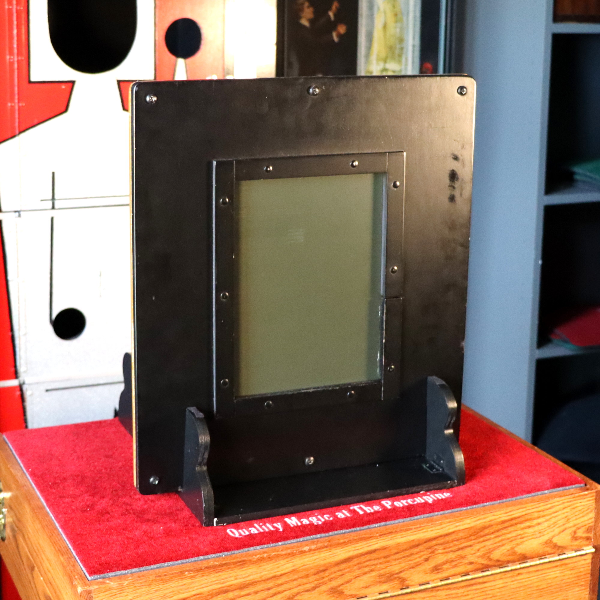 This is probably the most sought after effect from Howie’s Limited Editions line of magic back in the 1980’s and 1990’s and which was subsequently purchased by Hank Lee c. 1995.  This mirror came in an Oak frame and this one, a Gold frame.  With the exception of the finish there is no other difference between the two versions.