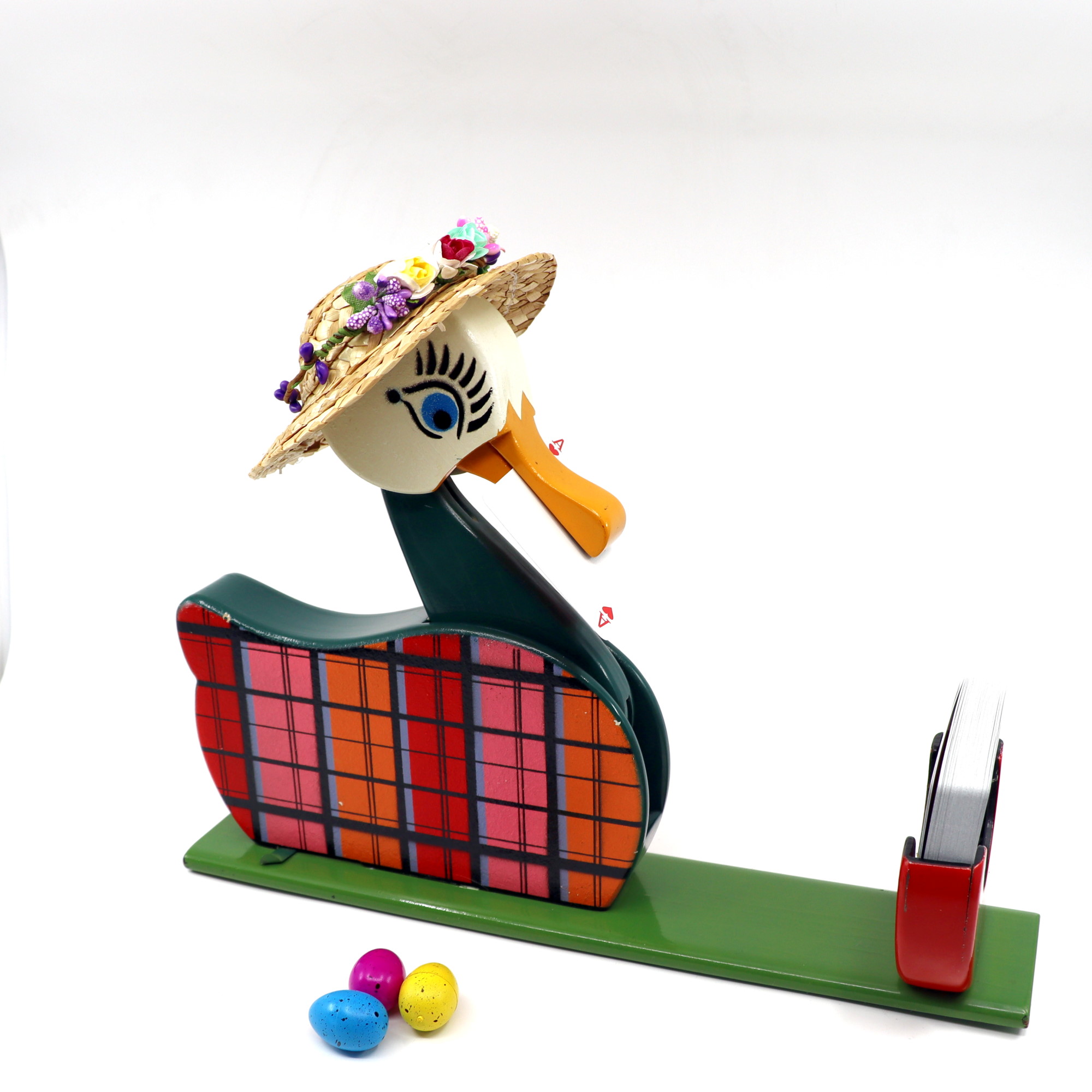 There have been many versions of the Card Duck over the years. It was invented by Laurie Ireland and marketed by him as Otto, The Automaton Duck.