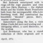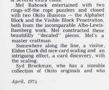 Mel started producing these for his own use at least as early as 1974 (see the clip from Linking ring). When he started his business he created three versions of this effect (Large, Small, and Mini). The mini version was the rarest, and the painted mini version even rarer still.