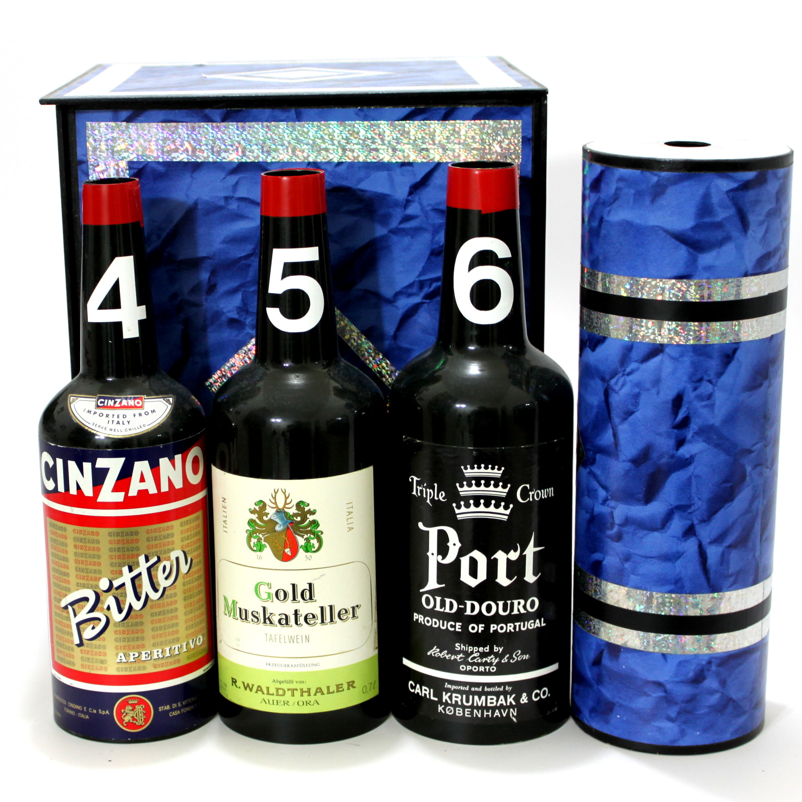 Effect: One at a time, show six different wine bottles in a box. Read the labels to the audience so they know that all six bottles really are different. Place the bottles back into the box after reading each label. Now, show an empty tube and place it over one of the bottles in the box. Remove the tube with the bottle inside and explain that it is time for a contest.