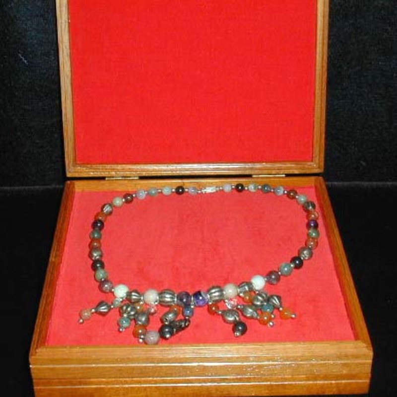 The necklace is shown, taken out, vanished, and then it reappears in the box. Simple plot and beautiful props!