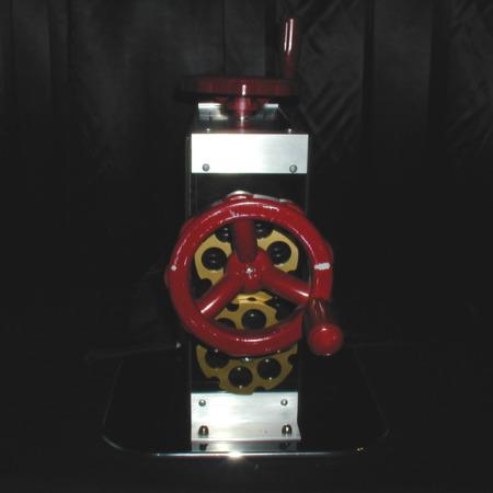 The housing that holds the roller is clear plexi, so you’ll see right through the sides and top as the four gears are turning. The unit is easy to operate and is a high impact visual effect. This unit is 12 inches high by 18 inches wide.