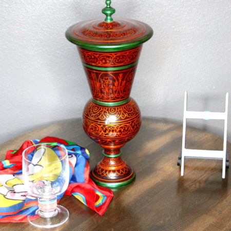 Boy what a rare and beautiful example of D.A. Tayade’s work this Rice Vase is. It stands 15″ tall which is quite a lot more impressive and rarer than the 11″ and 13″ ones you normally see. This will look amazing in your collection or in your next performance. Made from wood and perfectly hand painted this is a premium example of this classic effect.
