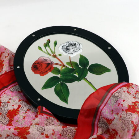 Effect: The performer takes a wooden hand mirror from a case and he displays it on both sides to spectators. He covers one side with a silk hanky and then two red roses appear in the mirror.