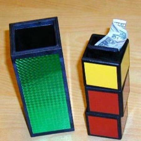 At first glance this looks like many similar effects following the Wonder Blocks theme – where the yellow block moves from the bottom to the middle and then the top. The big difference with this version is a borrowed bill or ring can be placed in the yellow block and it is in the yellow block at each stage. Now that is a wonderful twist on this effect!