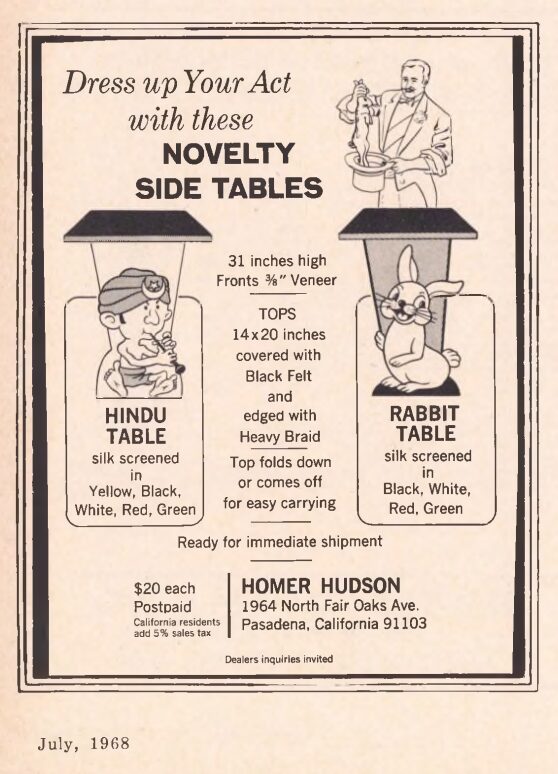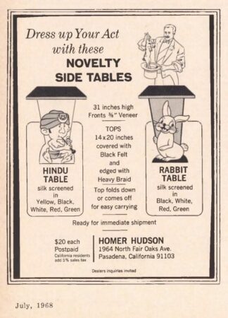 This beautiful table was built by Homer Hudson. Originally he made them directly for Floyd Thayer and they were sold as Thayer’s Improved Rabbit Table (c. 1946) and then later directly from Homer himself (c. 1968)